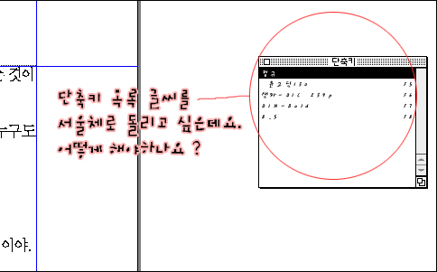 쿽에서 단축키창의 글씨를....