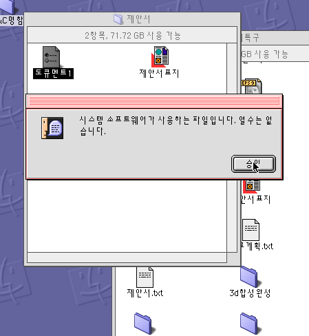 그런데 강제종료 이후에 보니 이렇게 변경되어서 [시스템 소프트웨어가 사용하는 파일입니다. 열 수는 없습니다] 라는 메세지가 뜨면서